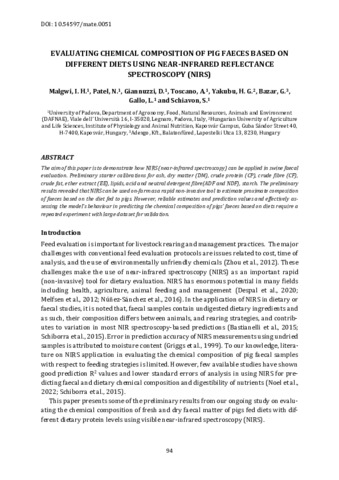Malgwi, I. H. és Patel, N és Giannuzzi, D. és Toscano, A. és Yakubu, H. G. és Bazar, G. és Gallo, L. és Schiavon, S. (2022) Evaluating chemical composition of pig faeces based on different diets using Near-Infrared Reflectance Spectroscopy (NIRS). In: Halas, Veronika és Tóthi, Róbert (Szerk.) Innovations in Animal Nutrition and Food Poduction : 20th International Symposium on Animal Nutrition, 29 September, 2022 Kaposvár, Hungary : Proceedings [Innovációk a takarmányozás és az élelmiszer-előállítás gyakorlatában : 20. Nemzetközi Takarmányozási. MATE Press, Gödöllő. 127 p. pp. 94-100. ISBN 978-963-623-031-9