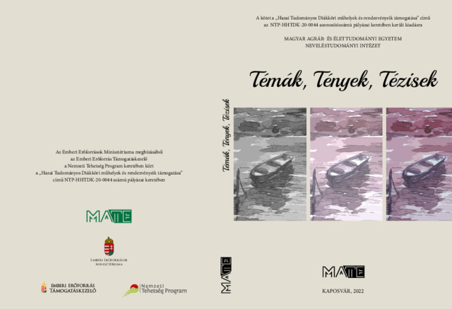 Bencéné Fekete, Andrea (Szerk.). (2022) Témák, tények, tézisek : Válogatás a MATE Neveléstudományi Intézet tehetséggondozó programjainak eredményeiből. Magyar Agrár- és Élettudományi Egyetem Neveléstudományi Intézet, Kaposvár. 120 p. ISBN 9789636230067 (print) 9789636230074 (pdf)