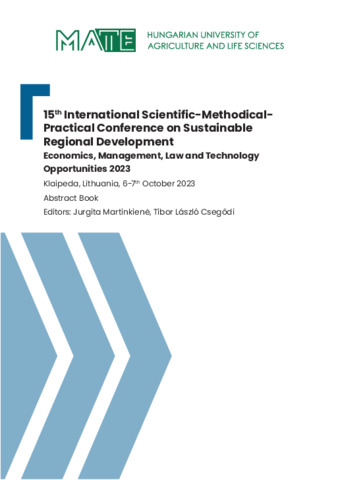 Martinkiene, Jurgita és Tibor László, Csegődi (Szerk.). (2023) 15th International Scientific-Methodical-Practical Conference on Sustainable Regional Development Economics, Management, Law, And Technology Opportunities 2023, Klaipeda, Lithuania, 6-7th October 2023 : Abstract Book. Magyar Agrár- és Élettudományi Egyetem, Gödöllő. 76 p. ISBN 978-963-623-074-6