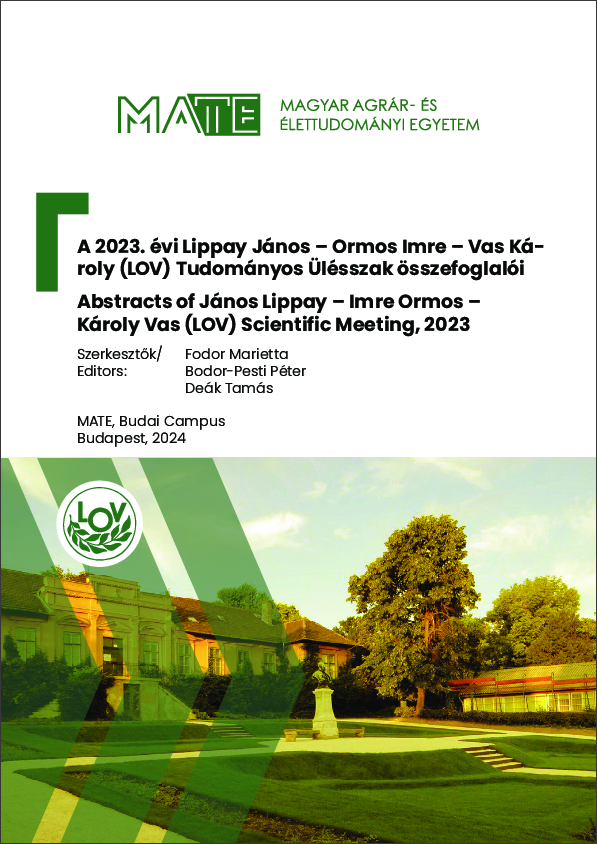Fodor, Marietta és Bodor-Pesti, Péter és Deák, Tamás (Szerk.). (2024) A 2023. évi Lippay János – Ormos Imre – Vas Károly (LOV) Tudományos Ülésszak összefoglalói = Abstracts of János Lippay – Imre Ormos – Károly Vas (LOV) Scientific Meeting, 2023. MATE Budai Campus, Budapest. 149 p. ISBN 978-615-02-0252-5