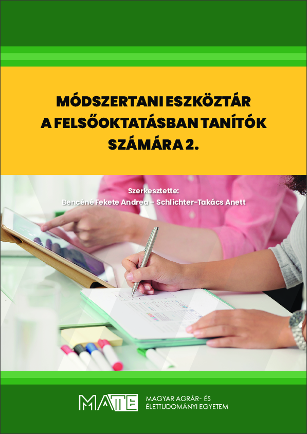 Bencéné Fekete, Anikó Andrea és Schlichter-Takács, Anett (Szerk.). (2024) Módszertani eszköztár a felsőoktatásban tanító oktatók számára 2. MATE Press, Gödöllő. 213 p. ISBN 978-963-623-091-3