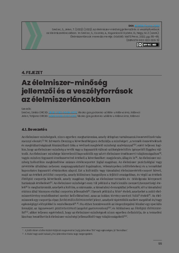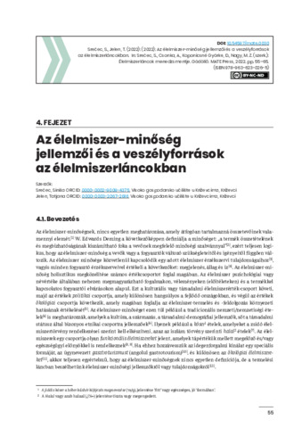 Srečec, Siniša és Jelen, Tatjana (2022) Az élelmiszer-minőség jellemzői és a veszélyforrások az élelmiszerláncokban. In: Srečec, Siniša és Csonka, Arnold és Koponicsné Györke, Diána és Nagy, Mónika Zita (Szerk.) Élelmiszerláncok menedzsmentje. MATE Press, Gödöllő. pp. 55-65. ISBN 978-963-623-026-5