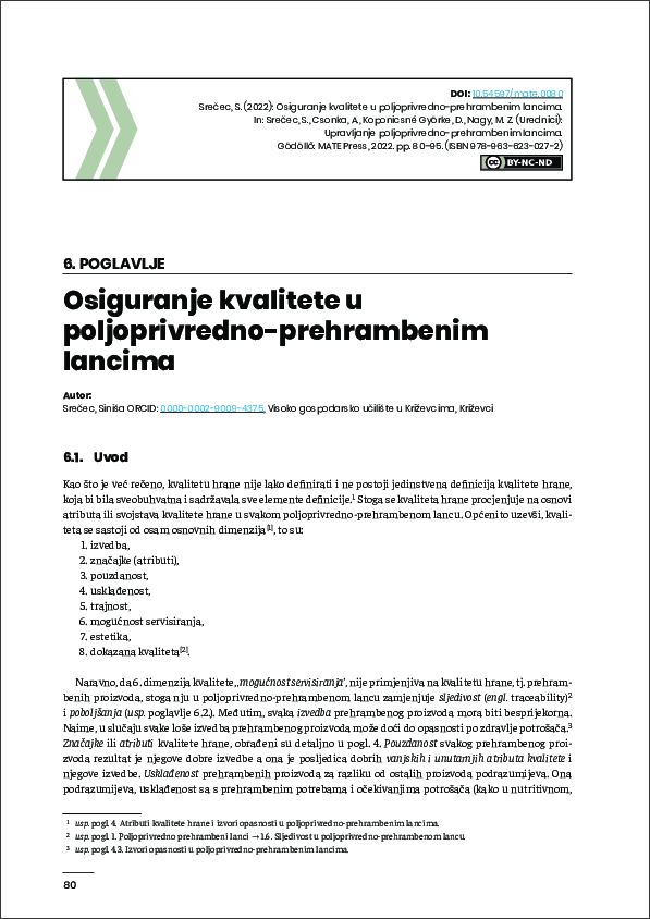 Srečec, Siniša (2022) Osiguranje kvalitete u poljoprivredno-prehrambenim lancima. In: Srečec, Siniša és Csonka, Arnold és Koponicsné Györke, Diána és Nagy, Mónika Zita (Szerk.) Upravljanje poljoprivredno-prehrambenim lancima. MATE Press, Gödöllő. ISBN 978-963-623-027-2