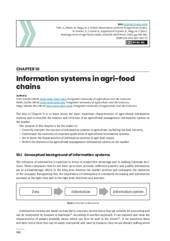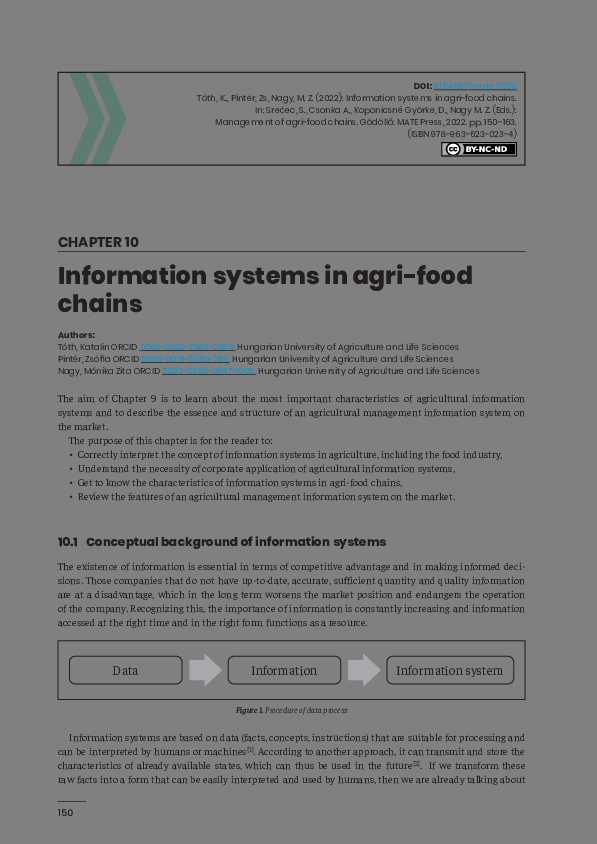 Tóth, Katalin és Pintér, Zsófia és Nagy, Mónika Zita (2022) Information systems in agri-food chains. In: Srečec, Sinisa és Csonka, Arnold és Koponicsné Györke, Diána és Nagy, Mónkia Zita (Szerk.) Management of agri-food chains. MATE Press, Gödöllő. pp. 150-163. ISBN 978-963-623-023-4