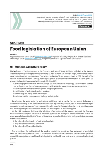 Koponicsné Györke, Diána és Szabó, Kinga (2022) Food legislation of European Union. In: Srečec, Sinisa és Csonka, Arnold és Koponicsné Györke, Diána és Nagy, Mónika Zita (Szerk.) Management of agri-food chains. MATE Press, Gödöllő. pp. 164-177. ISBN 978-963-623-023-4