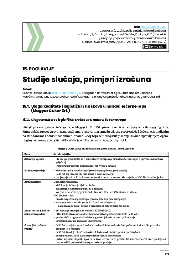 Csonka, Arnold és Horváth, Tamás (2022) Studije slučaja, primjeri izračuna. In: Srečec, Sinisa és Csonka, Arnold és Koponicsné Györke, Diána és Nagy, Mónika Zita (Szerk.) Upravljanje poljoprivredno-prehrambenim lancima. MATE Press, Gödöllő. ISBN 978-963-623-027-2