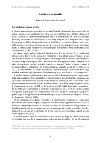 Bencéné Fekete, Anikó Andrea (2024) Kutatásalapú tanulás. In: Bencéné Fekete, Andrea és Schlichter-Takács, Anett (Szerk.) Módszertani eszköztár a felsőoktatásban tanító oktatók számára 2. MATE Press, Gödöllő. pp. 9-22. ISBN 978-963-623-091-3 (pdf)
