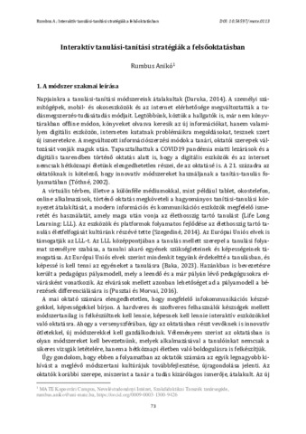 Rumbus, Anikó (2024) Interaktív tanulási-tanítási stratégiák a felsőoktatásban. In: Bencéné Fekete, Andrea és Schlichter-Takács, Anett (Szerk.) Módszertani eszköztár a felsőoktatásban tanító oktatók számára 2. MATE Press, Gödöllő. pp. 73-90. ISBN 978-963-623-091-3 (pdf)