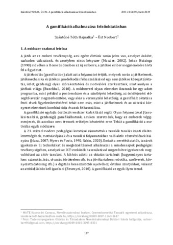 Szántóné Tóth, Hajnalka és Üst, Norbert A gamifikáció alkalmazása felsőoktatásban. In: Bencéné Fekete, Andrea és Schlichter-Takács, Anett (Szerk.) Módszertani eszköztár a felsőoktatásban tanító oktatók számára 2. MATE Press, Gödöllő. pp. 157-172. ISBN 978-963-623-091-3 (pdf)