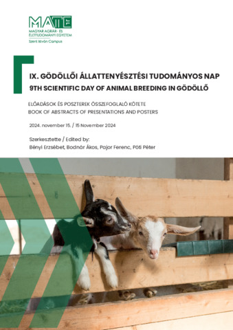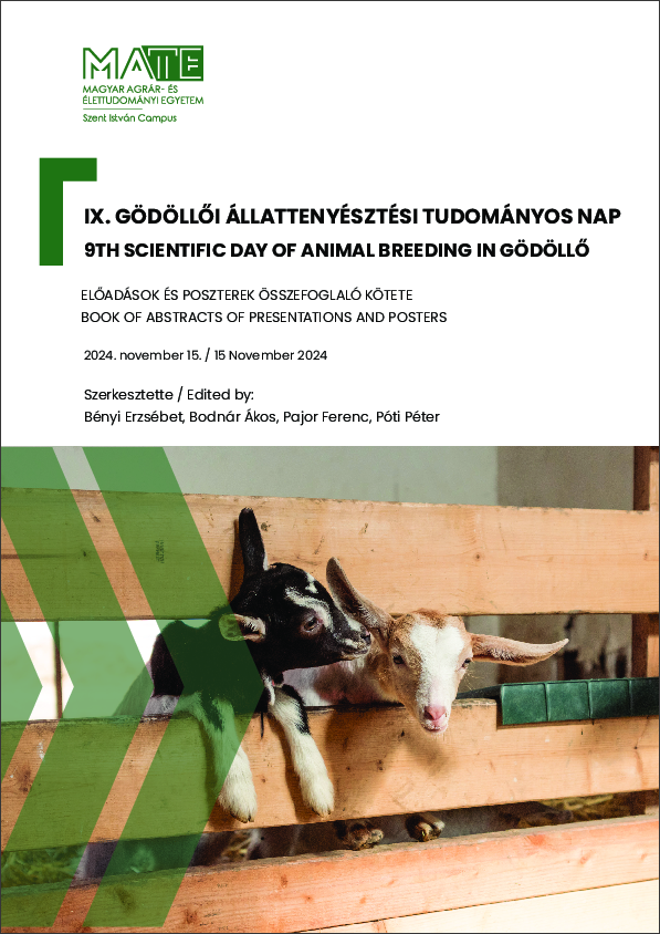 Bényi, Erzsébet és Bodnár, Ákos és Pajor, Ferenc és Póti, Péter (Szerk.). (2024) IX. Gödöllői Állattenyésztési Tudományos Nap : Előadások és poszterek összefoglaló kötete = 9th Scientific Day of Animal Breeding in Gödöllő : Book of Abstracts of Presentations and Posters. Magyar Agrár- és Élettudományi Egyetem Szent István Campus, Gödöllő. 115 p. ISBN 9789636231064