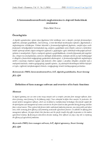 Dajka, Máté Ferenc (2024) A farmmenedzserszoftverek meghatározása és alapvető funkcióinak áttekintése. STUDIA MUNDI - ECONOMICA, 11 (3). pp. 5-18. ISSN 2415-9395