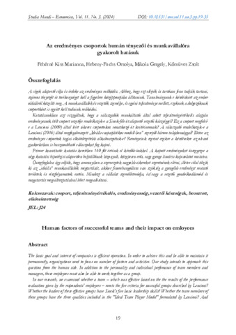 Hebeny-Fuchs, Orsolya és Fehérné Kiss, Marianna és Mikola, Gergely és Kőműves, Zsolt Sándor (2024) Az eredményes csoportok humán tényezői és munkavállalóra gyakorolt hatásuk. STUDIA MUNDI - ECONOMICA, 11 (3). pp. 19-35. ISSN 2415-9395