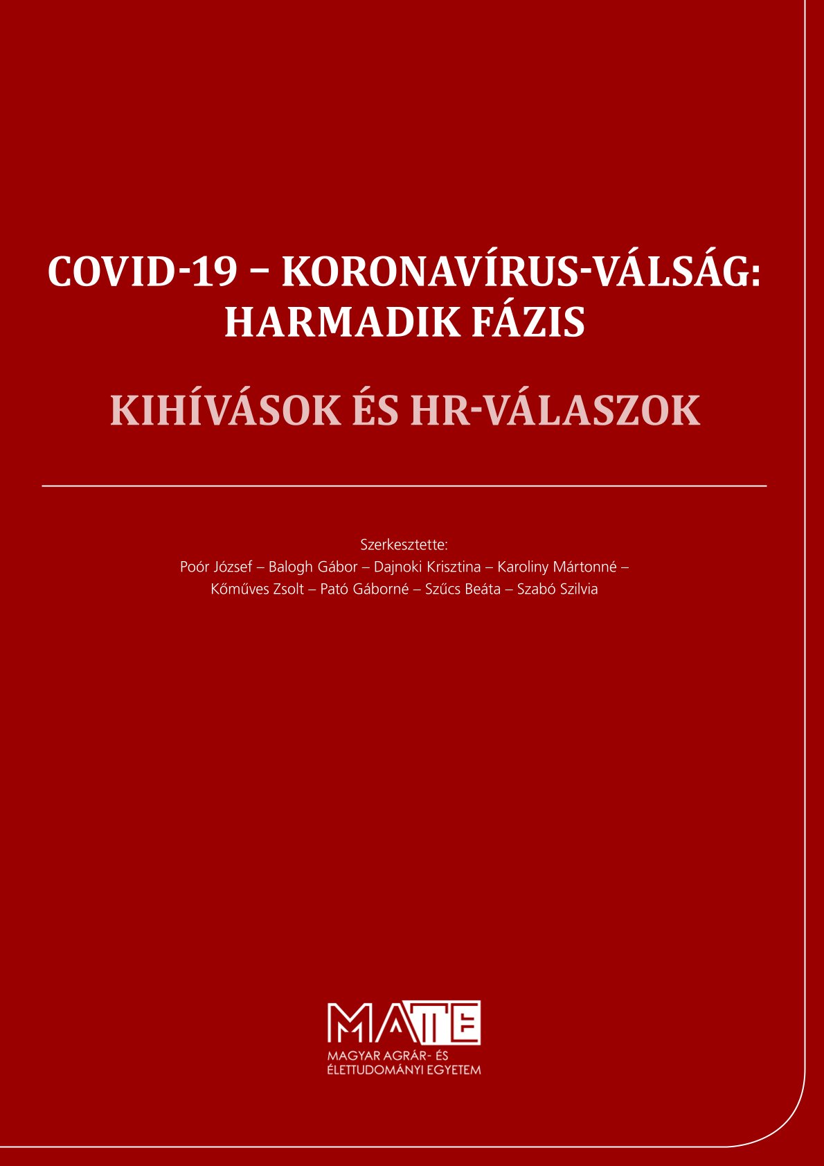 Poór, József és Balogh, Gábor és Dajnoki, Krisztina és Karoliny, Mártonné és Kőműves, Zsolt és Pató Gáborné Szűcs, Beáta és Szabó, Szilvia (Szerk.). (2021) COVID-19 – koronavírus-válság: Harmadik fázis : Kihívások és HR-válaszok. Magyar Agrár- és Élettudományi Egyetem, Gödöllő. 66 p. ISBN 978-963-269-957-8