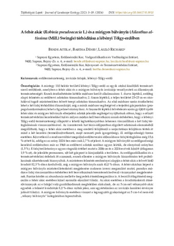 Bende, Attila és Bartha, Dénes és László, Richárd (2024) Expansion of black locust (Robinia pseudoacacia L.) and tree of heaven (<i>Ailanthus altissima</i> (Mill.) Swingle) in the Oak forest of Lébény. TÁJÖKOLÓGIAI LAPOK, 22 (2). pp. 3-19. ISSN 1589-4673