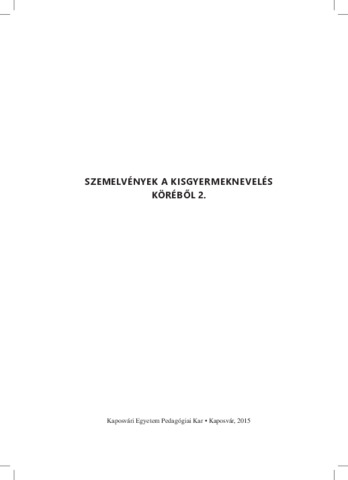 Nyitrai, Ágnes (Szerk.). (2015) Szemelvények a kisgyermeknevelés köréből II. Kaposvári Egyetem Pedagógiai Kar, Kaposvár. 184 p. ISBN 978-615-5599-06-4