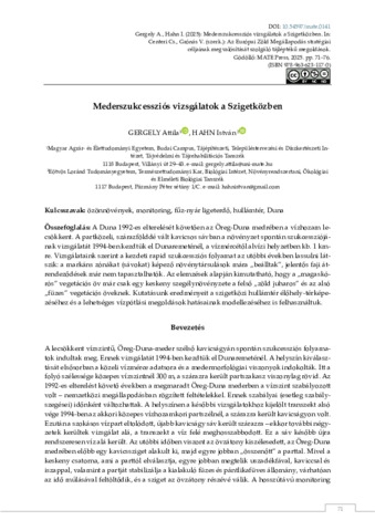 Gergely, Attila és Hahn, István (2025) Mederszukcessziós vizsgálatok a Szigetközben. In: Centeri, Csaba és Grónás, Viktor (Szerk.) Az Európai Zöld Megállapodás stratégiai céljainak megvalósítását szolgáló tájléptékű megoldások. MATE Press, Gödöllő. pp. 71-76. ISBN 978-963-623-117-0 (pdf)