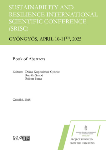 Koponicsné Györke, Diána és Szabó, Rozália és Barna, Róbert (Szerk.). (2025) Sustainability and Resilience International Scientific Conference (SRISC), Gyöngyös, april 10-11TH, 2025 : Book of Abstracts. Hungarian University of Agriculture and Life Sciences, Institute of Rural Development and Sustainable Economy, Gödöllő. 212 p. ISBN 978-963-623-118-7 (pdf)