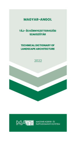 Andor, Anikó (Szerk.). (2022) Magyar–Angol Angol–Magyar Táj- és Környezettervezési Szakszótár / English–Hungarian Hungarian–English Technical Dictionary of Landscape Architecture. Magyar Agrár- és Élettudományi Egyetem, Gödöllő. ISBN 978-963-269-981-3