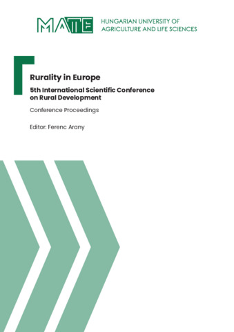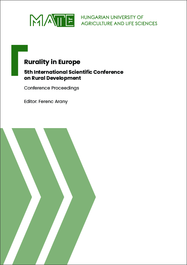 Arany, Ferenc (Szerk.). (2022) Rurality in Europe. 5th International Scientific Conference on Rural Development. Conference Proceedings. Hungarian University of Agriculture and Life Sciences, Gödöllő. 251 p. ISBN 978-963-269-995-0