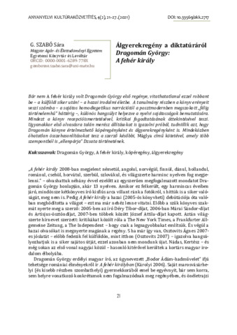 G. Szabó, Sára (2021) Álgyerekregény a diktatúráról : Dragomán György: A fehér király. Anyanyelvi Kultúraközvetítés, 4 (2). pp. 21-27. ISSN 2063-2991