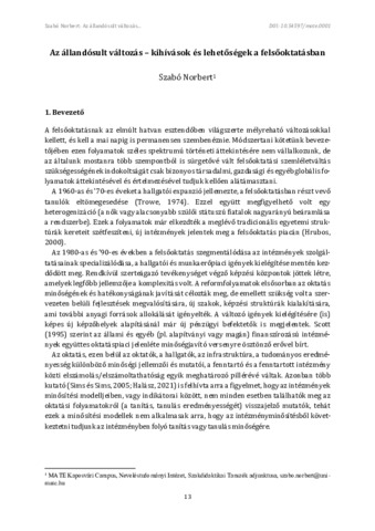 Szabó, Norbert (2022) Az állandósult változás – kihívások és lehetőségek a felsőoktatásban. In: Bencéné Fekete, Andrea és Schlichter-Takács, Anett (Szerk.) Módszertani eszköztár a felsőoktatásban tanító oktatók számára. MATE Press, Kaposvár. 279 p. pp. 13-20. ISBN 978-963-623-017-3