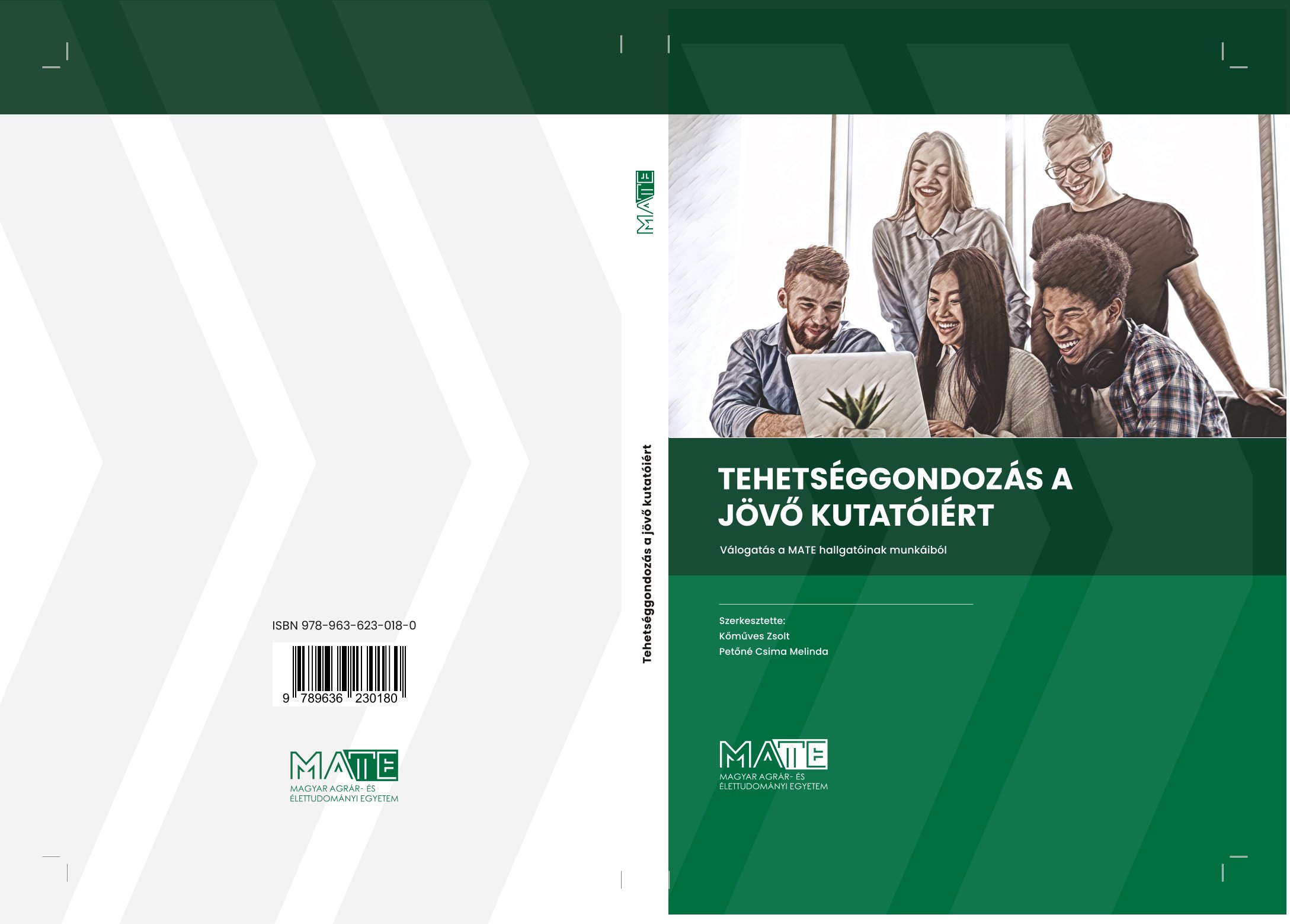 Kőműves, Zsolt és Petőné Csima, Melinda (Szerk.). (2022) Tehetséggondozás a jövő kutatóiért : Válogatás a MATE hallgatóinak munkáiból. Magyar Agrár- és Élettudományi Egyetem, Gödöllő. 227 p. ISBN 978-963-623-018-0 (nyomtatott), 978-963-623-019-7 (pdf)