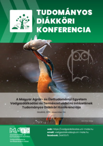 Bíró, Zsolt (Szerk.). (2022) A Magyar Agrár- és Élettudományi Egyetem Vadgazdálkodási és Természetvédelmi Intézetének Tudományos Diákköri Konferenciája : Gödöllő, 2021. november 24. Absztraktkötet. Magyar Agrár- és Élettudományi Egyetem, Gödöllő. 32 p. ISBN 978-963-623-028-9 (pdf)