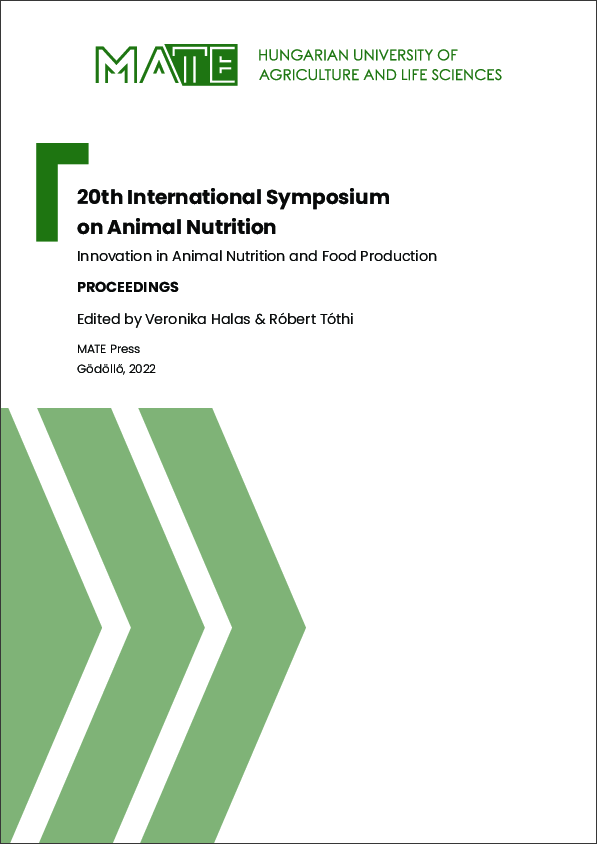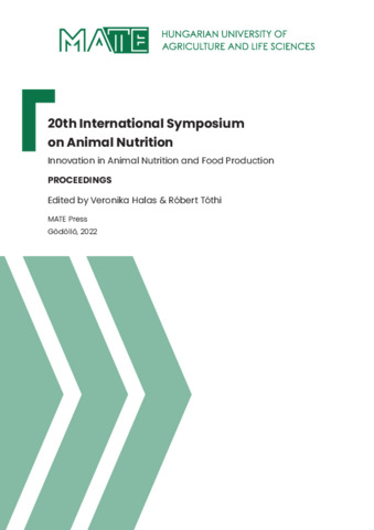 Halas, Veronika és Tóthi, Róbert (Szerk.). (2022) Innovations in Animal Nutrition and Food Poduction : 20th International Symposium on Animal Nutrition, 29 September, 2022 Kaposvár, Hungary : Proceedings [Innovációk a takarmányozás és az élelmiszer-előállítás gyakorlatában : 20. Nemzetközi Takarmányozási Szimpózium, 2022. szeptember 29. Kaposvár : Tanulmányok]. MATE Press, Gödöllő. 127 p. ISBN 978-963-623-031-9